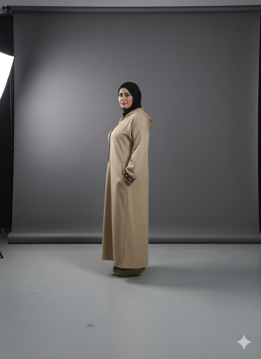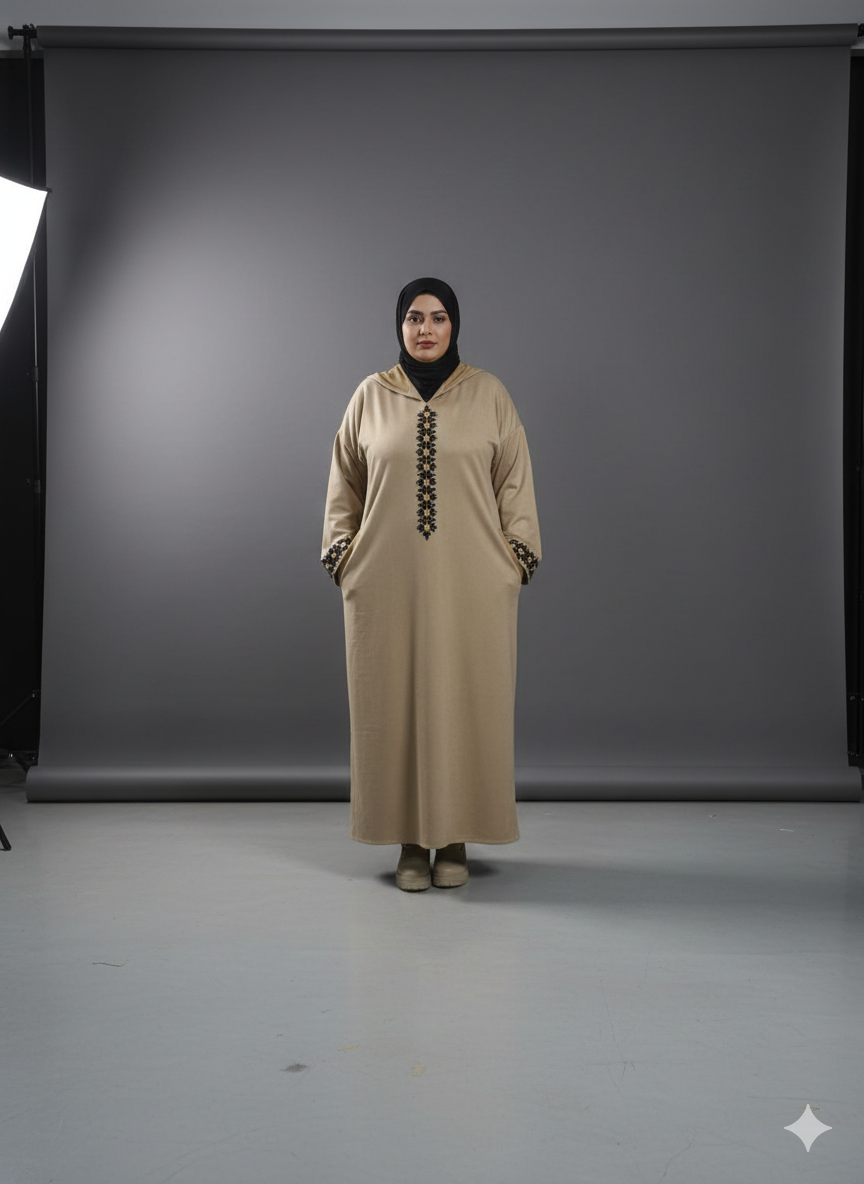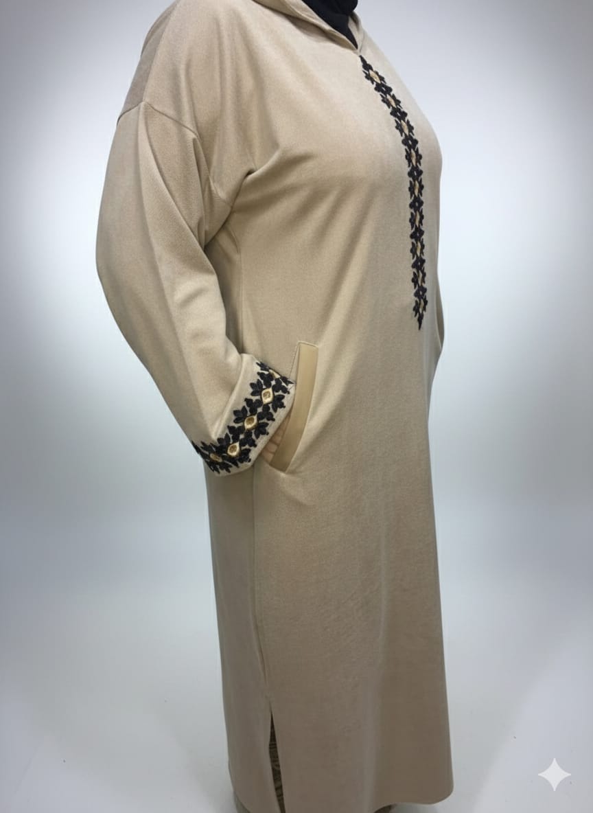 خدامة بقماش دافئ ومريح، مناسبة لفصل الخريف والشتاء، وكتعطي أناقة بلا تكلف.